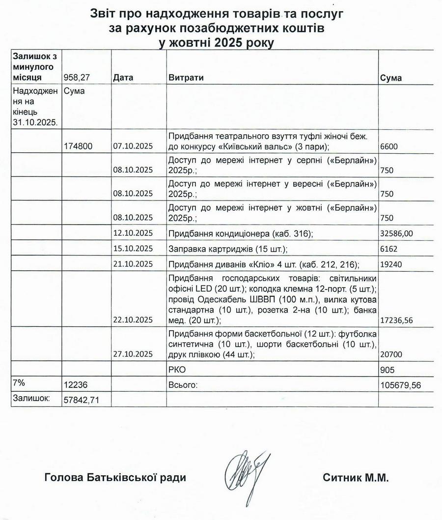 Фінансовий звіт за жовтень 2025 р.