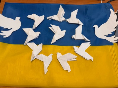Наші восьмикласники створили власні послання миру та склали їх у вигляді паперових голубів.